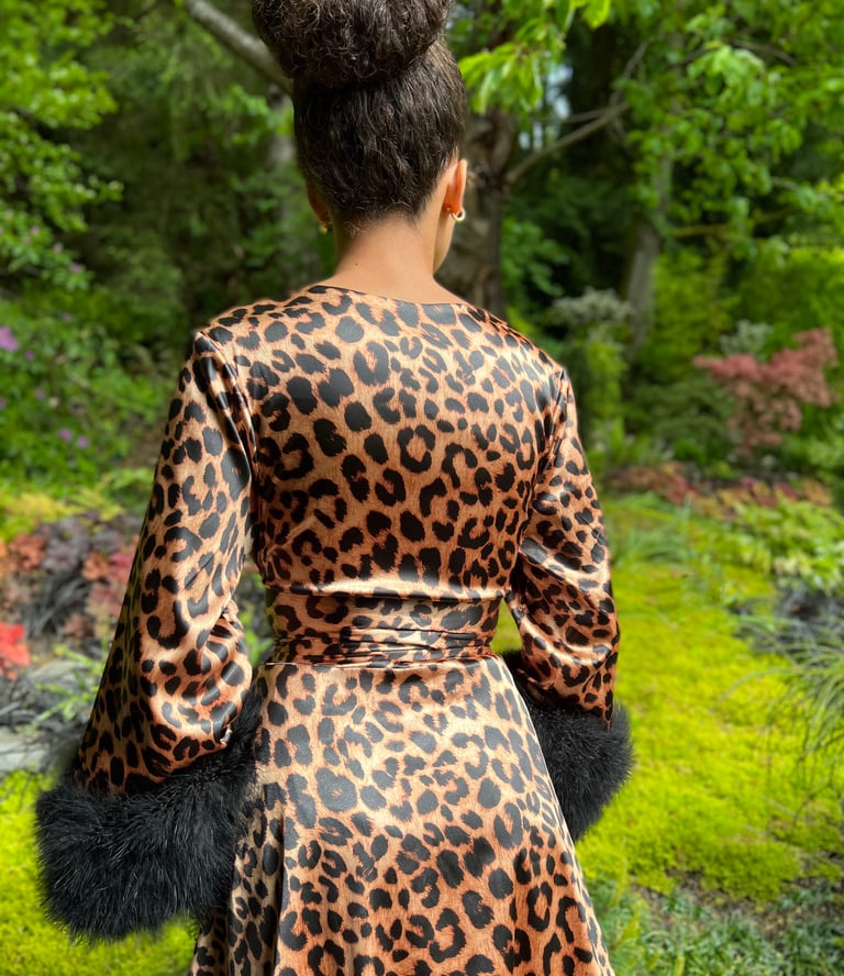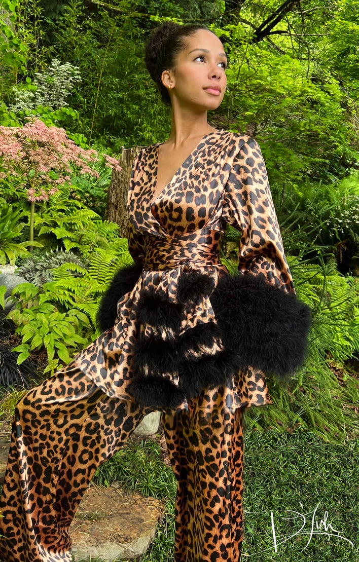 Leopard "Beverly" Lounge Suit w/ Marabou Cuffs PRE-ORDER FOR NOVEMBER